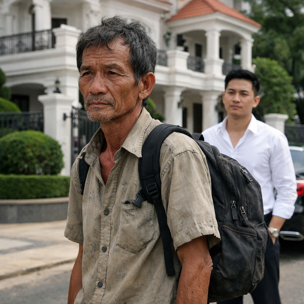 Ông lặng lẽ quay lưng, kéo lại chiếc balo rách, bước đi từng bước chậm chạp. Trước khi rời đi, ông chỉ ngoái nhìn cánh cổng lần cuối… nơi con gái ông đang sống mà ông không được phép gặp.